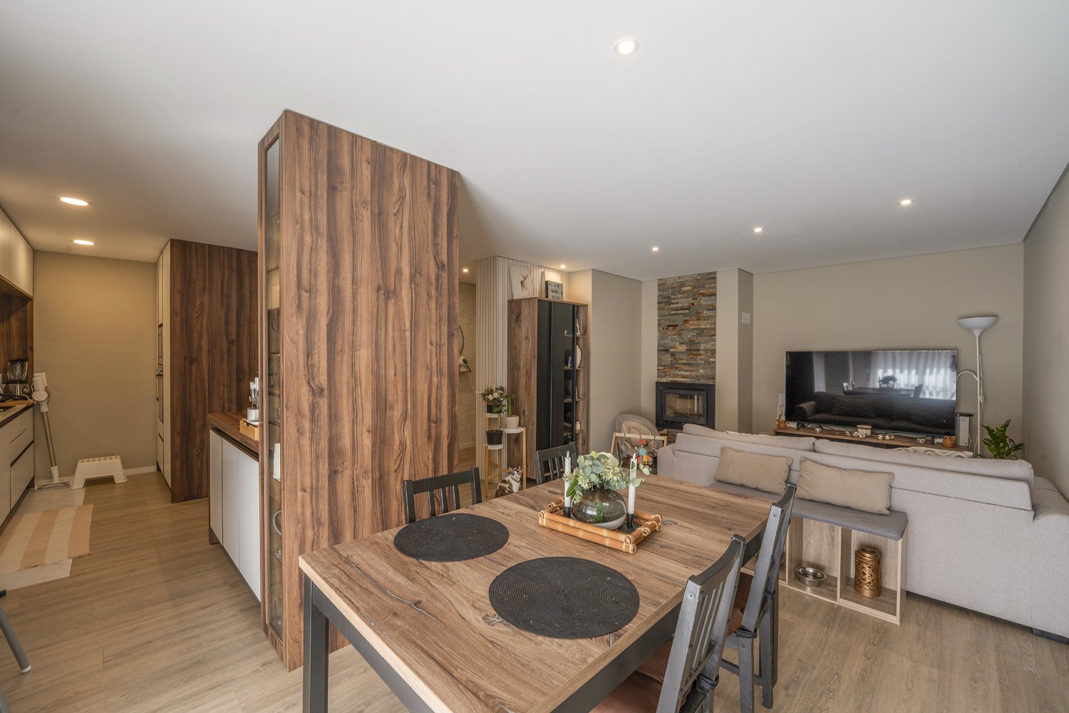Apartamento T3 totalmente renovado, com lugar de garagem para dois carros, duas varandas, orientação solar Nascente/Sul, com uma área total de 205 m2, no 1º andar, num prédio com elevador, no centro de Rio Tinto, Gondomar. Localizado numa zona residencial central com serviços, comércio, escolas, transportes públicos, inclusive a estação de metro da Venda Nova. Características do apartamento: - Hall com armário; - Sala e cozinha em open space; com lareira e varanda; a cozinha com ilha, equipada com placa, forno, exaustor, frigorífico e maquina da loiça; - Lavandaria com termoacumulador; - Despensa; - Corredor com porta a separar a zona privada da social; - 3 quartos, sendo um deles suíte com varanda; - Duas casas de banho completas, uma delas na suíte; - Roupeiros em dois quartos; Ar condicionado em todo o apartamento; piso flutuante, focos, vidros duplos, videoporteiro; Agende a sua visita e venha conhecer a sua confortável nova casa!
